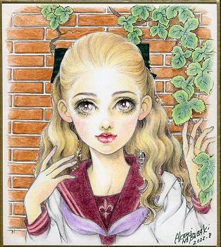 16×23cm 色鉛筆とホワイト サインと落款 額装