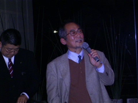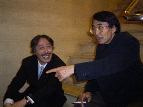 左、巴里夫。中央、米沢嘉博。右、みやわき心太郎。 パーティ会場が禁煙なので、みんな喫煙所の階段脇にたむろするする(笑 8時半過ぎに解散し、私は2次会パスなので、米沢さん巴さん等と談笑しながら四谷三丁目の駅までぶらぶら歩いて帰る。