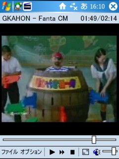 こちらは”TCPMP”。DivxやMPEG1、MPEG4など各種動画形式をサポートする優れもの。 他にも差し込んだSDカードをPC側からストレージとして認識させるUSBSELECT等、面白いソフトが色々あります。 最後に肝心の電話としての機能。着信があってもキーの応答が出来なくて電話に出れなかったり、いきなりフリーズしてハードリセットが必要になったりと問題は大いにあります。電話機能はOS上に乗っけるのではなく、やっぱり根幹部分に乗っけて欲しい。 まあ、色々書いたけど、通信機能搭載のPDAとしては、非常に面白いです。通信速度はそれなりだけど、料金考えれば納得は出来ます。かつてPDAを使っていた頃に比べれば、通信が標準搭載されたことにより、格段に使い道が広がってはいます。 かつてテッド・ネルソンが提唱した”ザナドゥ”(ゲームじゃないよ)とか、アラン・ケイの”ダイナブック”(東芝のじゃないよ)とか、理想のコンピュータ環境に関するパラダイムがありました。一歩一歩近づいているような気もすれば、ねじ曲がってきたような気もします。まあ、まだまだ発展途上なんでしょう。
