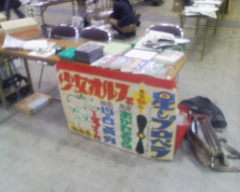 毎度恒例となったコミティア。色々な成り行きの都合により、知り合いの古本屋が出したDVDを販売する。ついでに別な知り合い関係のホントかもついでに売る。どれもこれもコミティア向きではないので売れる量はハナから知れているのだが、何せ種類が多いので(20種類もある)数冊ずつでも結構な量になってしまった。案の定、持ち込みと持ち帰りであまり重量が変わらないという落とし穴に陥る(笑 終了後、ざちおさん達とうめちゃん達で飲みに行く。イベント後に飲むのはちょっと疲れるなぁ 写真はW−ZERO3esで撮影。ぼけているのはマクロモードのまま撮影したせい。