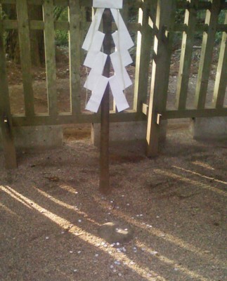 奥の方に巨大なナマズの頭を押さえている要石という物がありました。地面に露出している部分は小さいが本体は七日七晩掘り返しても出てこないほど大きいという言い伝えがあるそうです。 「天然石おみくじ」というやつを引いたら”吉”で中に”ソーダライト”が付いておりました。