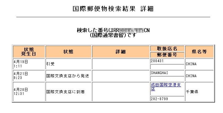 本日28日になってようやく成田の国際交換支店に到着。1週間もどこ行ってたんだこの荷物は(^^;。1週間もあれば地球を2周はできるぞ。 これから通関とかの作業も入るだろうから、多分連休前には届かないんだろうなorz。