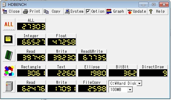 自宅のPC(日立プリウス)のディスクが死んでしまったので、もう一台予備用のマシンの購入を検討。 最初は中古のデスクトップマシンを検討していたのだが、手頃な所がチャチャッと見つからなかったのと、お店のアルバイト用に予備マシンがあったほうがよいかと思いノートPCを検討。 今回の購入テーマは、安くて軽くてバッテリーが普通に持つマシン。性能云々もちょっと考えたのだが、結局値段とシンプルさを優先して考えてみた。 結局、ASUSのEee PC 1011PX(黒モデル)をアマゾンで23,452円で購入。 概略のスペックはこんな感じ。 液晶サイズ 10.1 インチ (ワイド) CPUのAtomN455というのは比較的最近のCPUで擬似デュアルコアだそうだ。何処ら辺が擬似デュアルコアなのかはよくわからないが、最新の割にはあまり性能は高くなさそう。ビデオチップもインテルのほぼ最低クラス。まあ安いからな(^_^) HDBENCHでの結果はこんな感じ。