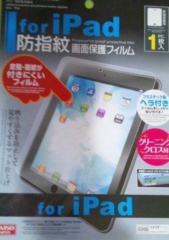 昨日ダイソーでノングレアタイプのiPad用の液晶保護フィルムを見つけたので、カッターでサイズ合わせて貼り付けてみた。意外と具合が良い。ちょっと文字がぼんやりするけど表面がサラサラして良い感じである。100円だしね。
